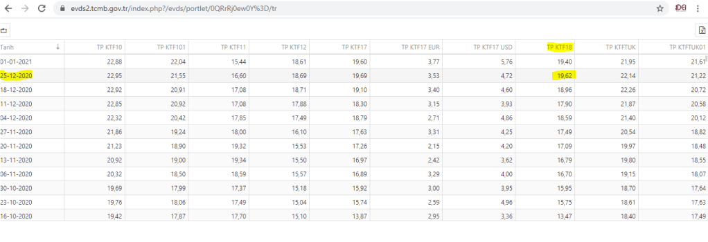 1 Seri No.lu Kurumlar Vergisi Genel Tebliği uyarınca indirim uygulamasında, TCMB tarafından indirimden yararlanılan yıl için en son açıklanan “Bankalarca Açılan Kredilere Uygulanan Ağırlıklı Ortalama Faiz Oranları”ndan “Ticari Krediler (TL Üzerinden Açılan) (Tüzel Kişi KMH ve Kurumsal Kredi Kartları Hariç)” faiz oranının dikkate alınacağı belirtilmiştir. Bu çerçevede, 2020 hesap dönemine ilişkin olarak indirim uygulamasında TCMB tarafından en son açıklanan %19,62 oranı dikkate alınacaktır.