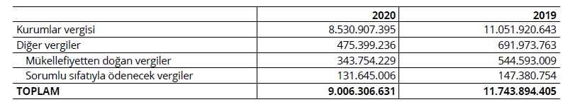 TCMB’nin 2019 ve 2020 yılları vergi ödemeleri aşağıdaki tabloda sunulmuştur: