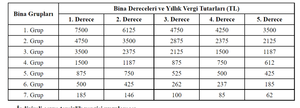Büyükşehir belediyeleri dışındaki belediyelerde uygulanacak olan çevre temizlik vergisi tarifesi aşağıda yer almaktadır.