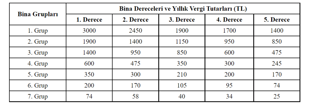 MADDE 4 – (1) İşyerleri ve diğer şekilde kullanılan binalara ait çevre temizlik vergisi, büyükşehir belediyeleri ve büyükşehir belediyeleri dışındaki belediyelerde aşağıdaki tarifelere göre uygulanacaktır.