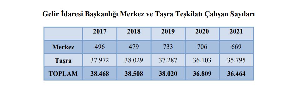 Gelir İdaresi Başkanlığı Merkez ve Taşra Teşkilatı Çalışan Sayıları