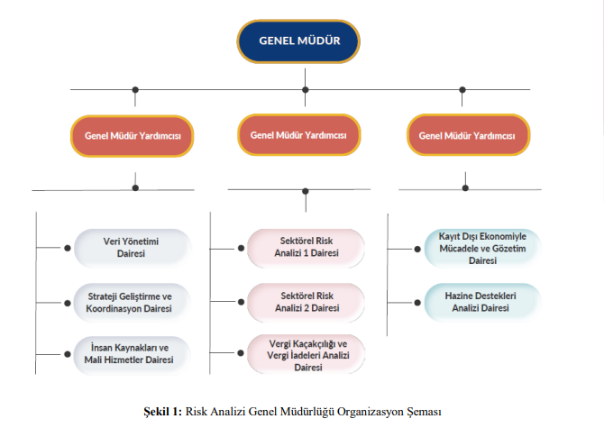 Hazine ve Maliye Bakanlığı Risk Analizi Genel Müdürlüğü Organizasyon Şeması aşağıda sunulmuştur: